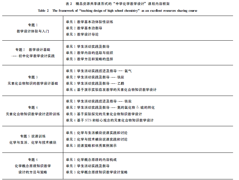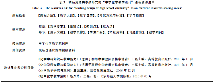 2 精品资源共享课形式的“中学化学教学设计与实践”