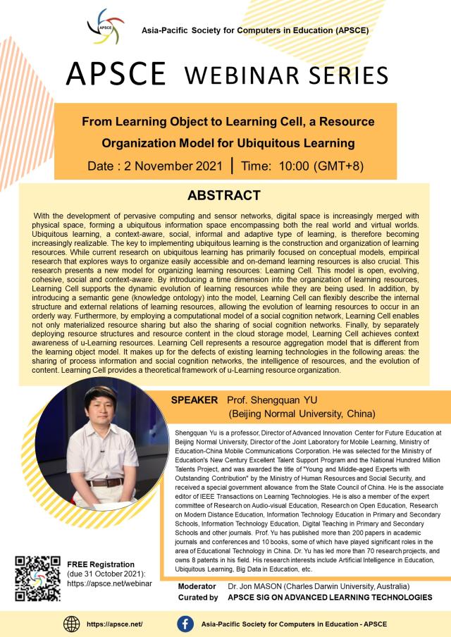 apsce webinar series | from learning object to learning cell, a resource organization model for ubiquitous learning