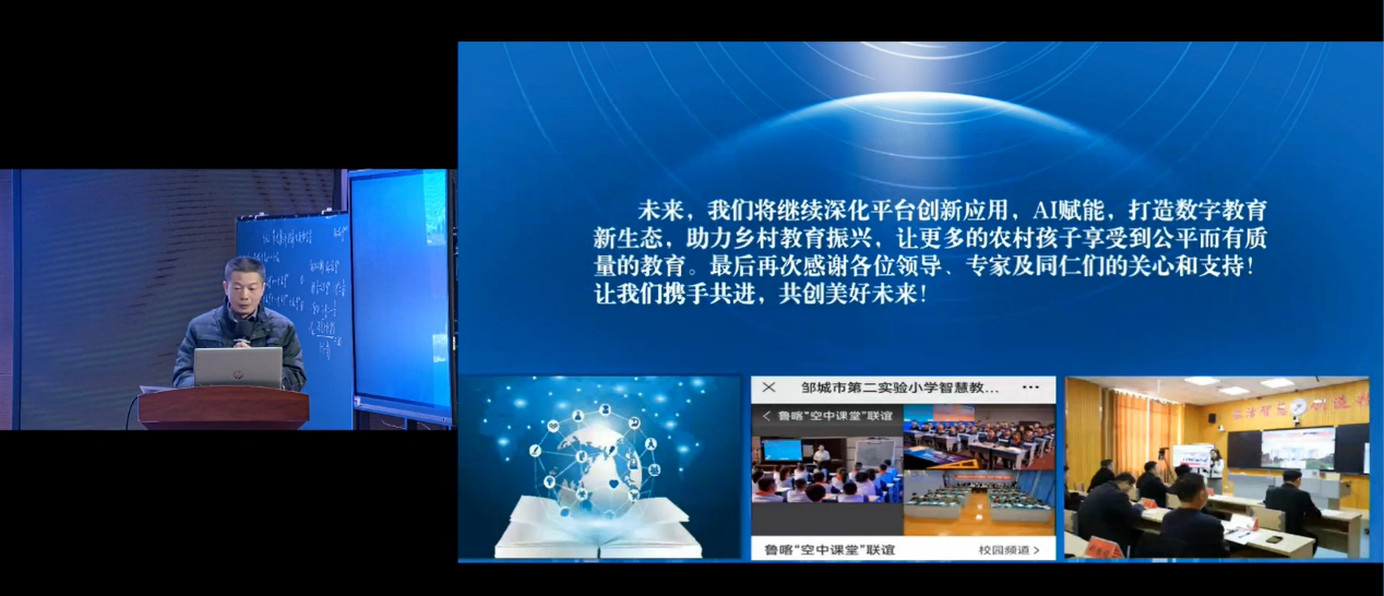 zoucheng city education and sports bureau teaching station stationmaster liu dongbo regional experience sharing, introduces the zoucheng city digital education new ecological construction experience, through expert leading and typical drive, depth application wisdom education platform, digital campus and wisdom classroom, realize the whole business chain through, and promote ai multimodal information evidence analysis technology application in classroom teaching, realize accurate teaching, form ai can assign teaching integration development mode.