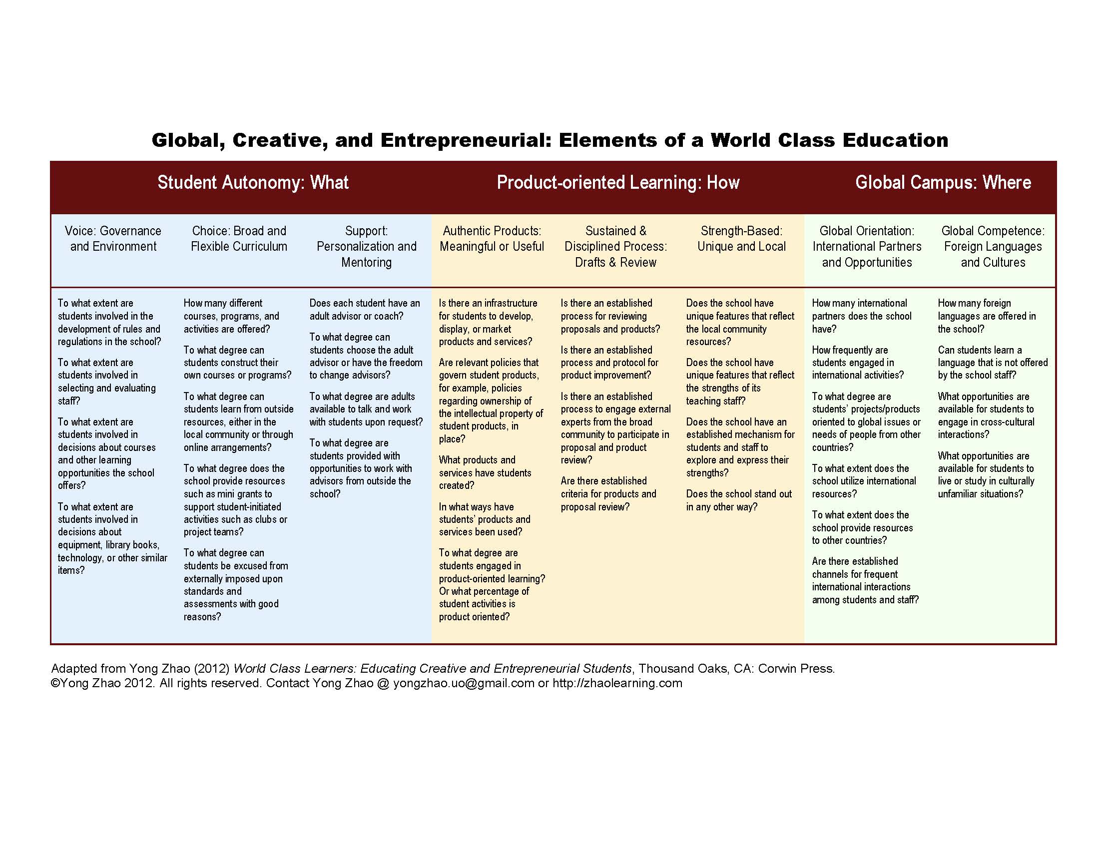 zhao, y. (2012). world class learners: educating creative and entrepreneurial students. thousand oaks, ca: corwin press, a joint publication with the national association of elementary school principals.