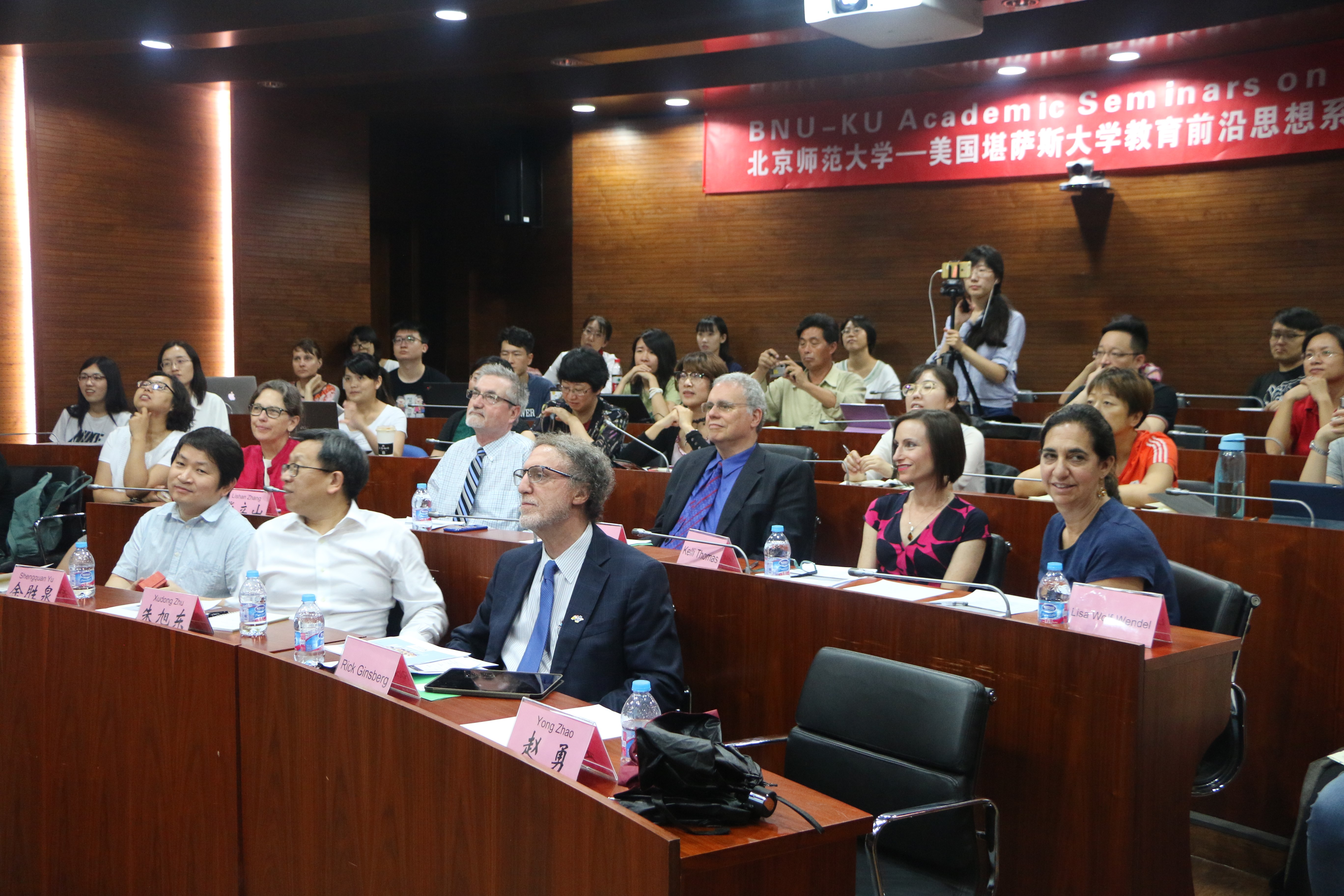 on 22nd and 23th june 2017, beijing normal university (bnu) -the university of kansas (ku) academic seminars on education were held at jingshi hall, beijing normal university. the seminars were organized by the advanced innovation center for future education (aicfe). twelve scholars from bnu and ku shared their ideas in the field of education policy, assessment, reform, special education and higher education in the context of china and the us. the seminar aims to strengthen the communication and collaboration with top universities worldwide and explore new mechanisms for technology innovation and talents cultivation by integrating domestic and international resources.