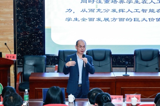 associate professor of south china normal university huang ziqian for attending teachers "artificial intelligence can assign classroom teaching innovation" seminar, deeply analyze the current situation and trend of artificial intelligence education, detailed teachers 'teaching ability intelligent evaluation system, and combined with the demonstration platform application case, from two dimensions of teachers and schools on the use of evaluation data methods and strategies of improving teachers' teaching ability. on this basis, associate professor huang ziqian shared how to use artificial intelligence to innovate teaching methods and intelligent platform to realize the enabling path to promote teachers' professional development, providing innovative ideas and practical guidance for teachers to give full play to the value of artificial intelligence in the whole teaching process.