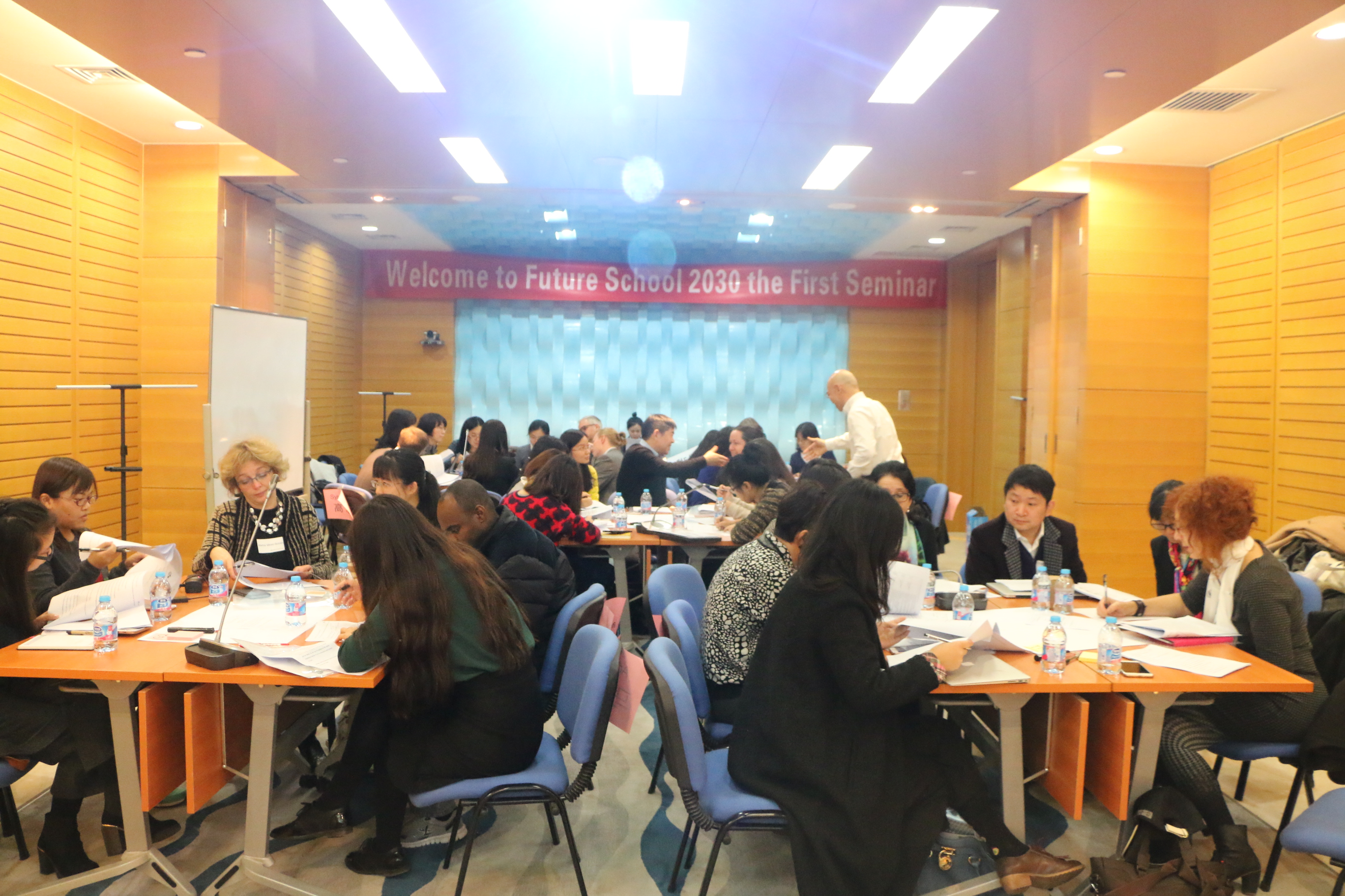 picture 1: attendees were discussing the content of the blue paper of future school 2030