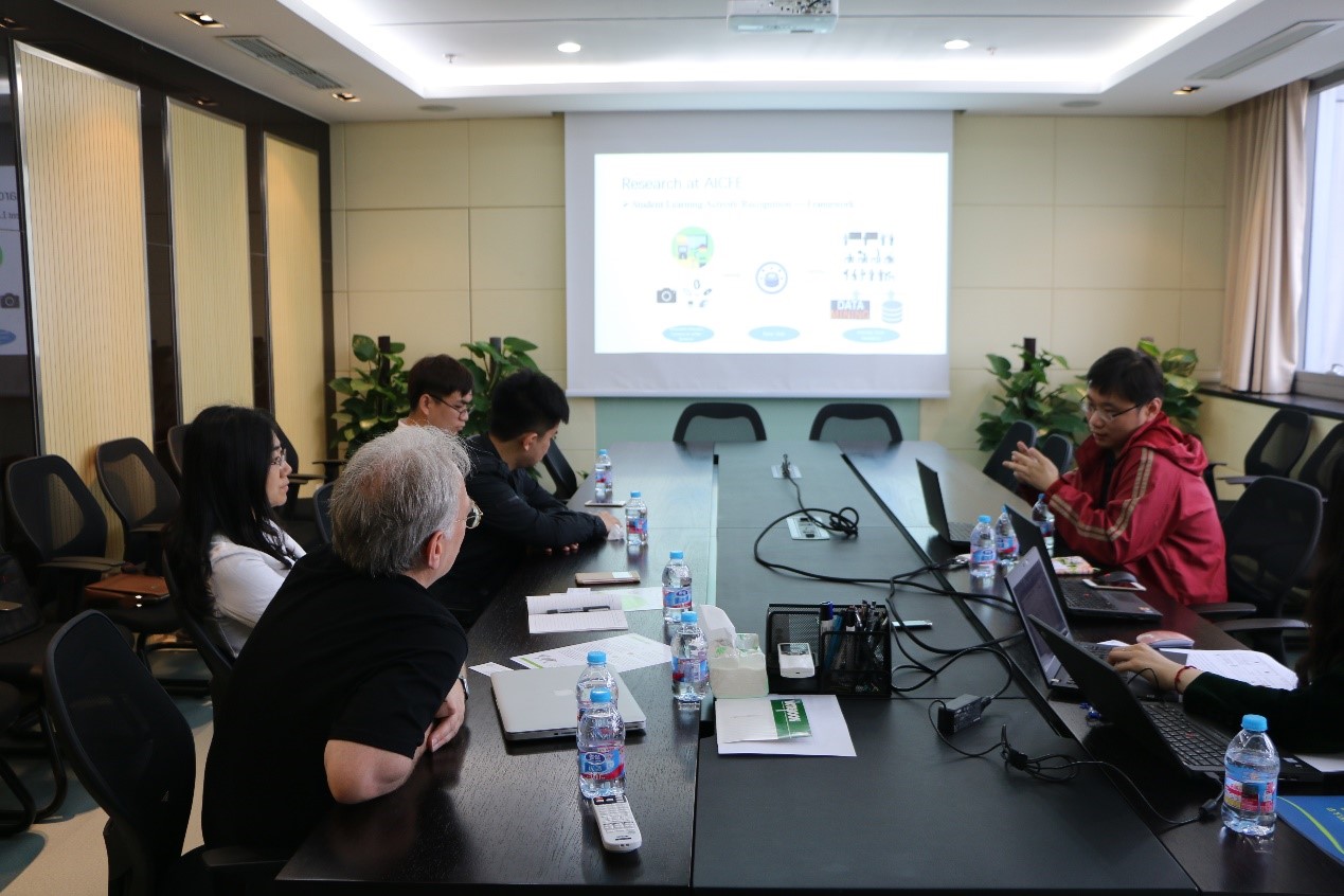 at the beginning of the conference, xuanwei ma introduced the background and development of aicfe and demonstrated the “smart learning partner” platform. later, the chief data scientist, dr. yu lu shared current research projects, including data-driven learning analysis and automated assessment system for short answer questions . during the conference,dr. wayne holmes expressed his surprise towards and appreciation of the rapid development of sophisticated research. meanwhile, dr. wayne holmes raised specific questions in regard to the “smart learning partner” platform, such as the context for student use and how data supports development. dr. wayne holmes also shared his research about learning design for online mathematics education. both parties further discussed the application and future prospects of the intelligent tutoring system. through this meeting, both sides achieved a better understanding of each other’s research fields, offering a great opportunity for future joint research cooperation.