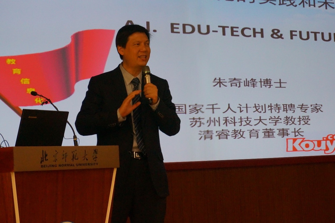 on the afternoon of june 6, dr. qifeng zhu, the chief scientist and chirman of arivoc international education group and the founder of the beijing competency research institute, gave a keynote speech entitled "the practice and future of artificial intelligence, intelligent learning space and educational informatization." in his speech, he reviewed the global educational informatization movement, including the rapid changes in china's educational informatization in the past couple of decades. he pointed out that educational informatization has entered a new stage of development. prof. qifeng zhu combined the development process of arivoc international education group in china's thousands of primary and secondary schools with three national empirical research reports to introduce the application of artificial intelligence technology in english classroom teaching, homework, listening and speaking tests and other aspects, and the development level of related technology in the world.