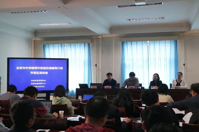 为进一步深化教育领域综合改革,深入贯彻落实《北京市中学教师开放型在线辅导计划(2018-2020)(试行)》(以下简称“双师服务”),以“互联网 ”和大数据深化创新教育基本公共服务方式,为保证怀柔区各校领导及师生能够深入了解双师服务,怀柔区科教研中心联合未来教育高精尖创新中心,于4月20日上午举行了怀柔区“北京市中学教师开放型在线辅导计划”启动大会。怀柔区科教研中心师训办主任于晓龙、副主任赵立荣、未来教育高精尖创新中心融合应用实验室主任陈玲,学科教育实验室常务副主任李晓庆,以及全区各初中校校长、教学副校长共50余人参加了会议。