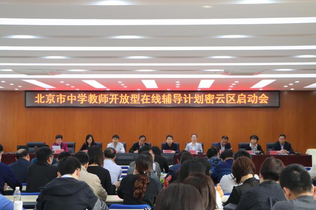 为进一步深化教育领域综合改革,深入贯彻落实《北京市中学教师开放型在线辅导计划(2018-2020)(试行)》(以下简称“双师服务”),以“互联网 ”和大数据深化创新教育公共服务方式,为保证密云区各校领导及师生能够深入了解双师服务,密云区教委联合北京师范大学未来教育高精尖创新中心(以下简称“中心”),于4月26日上午举行了北京市密云区中学教师开放型在线辅导计划启动大会。密云区教委副主任王学军、中教科科长吴明奎、人事科副科长张小菊,教师研修学院院长赵向东、副院长唐和平、中学教研室主任崔永学、师训办主任李金凤悉数到场,中心执行主任余胜泉、学科教育实验室常务副主任李晓庆,学科教育实验室密云区负责人朱玲,全区各初中校校长、副校长、年级主任和信息技术老师共120余人参加了会议。