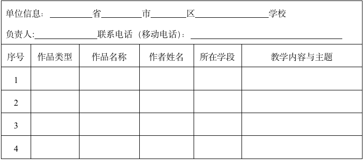 邮件内容:【参评作品报送单】,请各学校按照报送单的填写要求,将相关内容填写完整