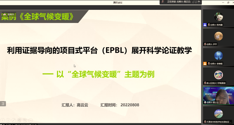 高云云以“全球气候变暖”主题为例,分享了“利用证据导向的项目式平台(epbl)展开科学论证教学”的案例,并通过此次项目式学习介绍了如何利用证据导向的项目式学习平台的优势,更好地展开科学论证的教学。平台可以记录学生的过程性数据,教师根据数据了解每个学生的学习情况,同时也能改进自己的教学设计,提高教学的有效性。