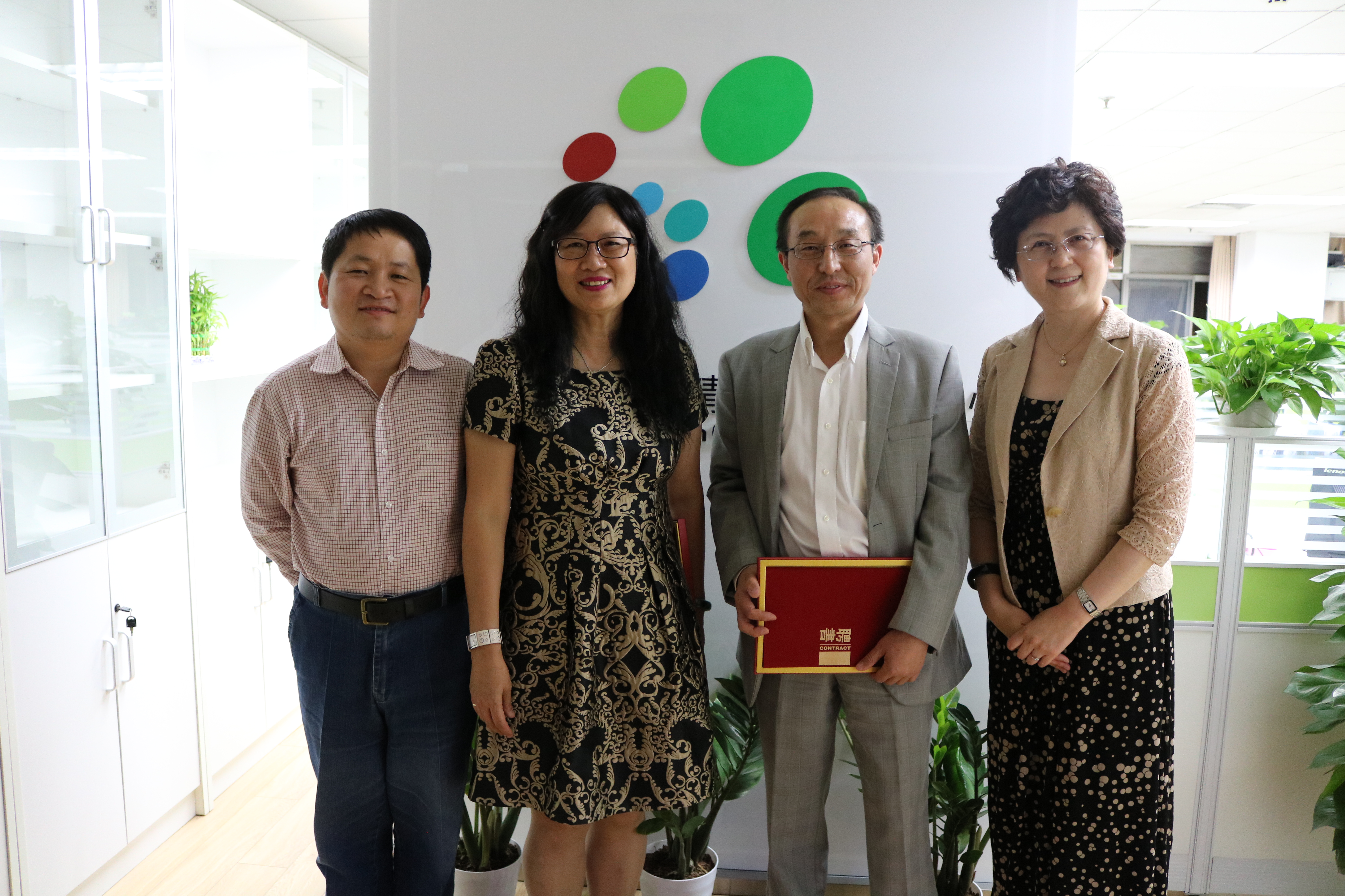 图 2 余胜泉教授(左一)、邱美虹教授(左二)、王磊教授(右一)、柳秀峰教授(右二)