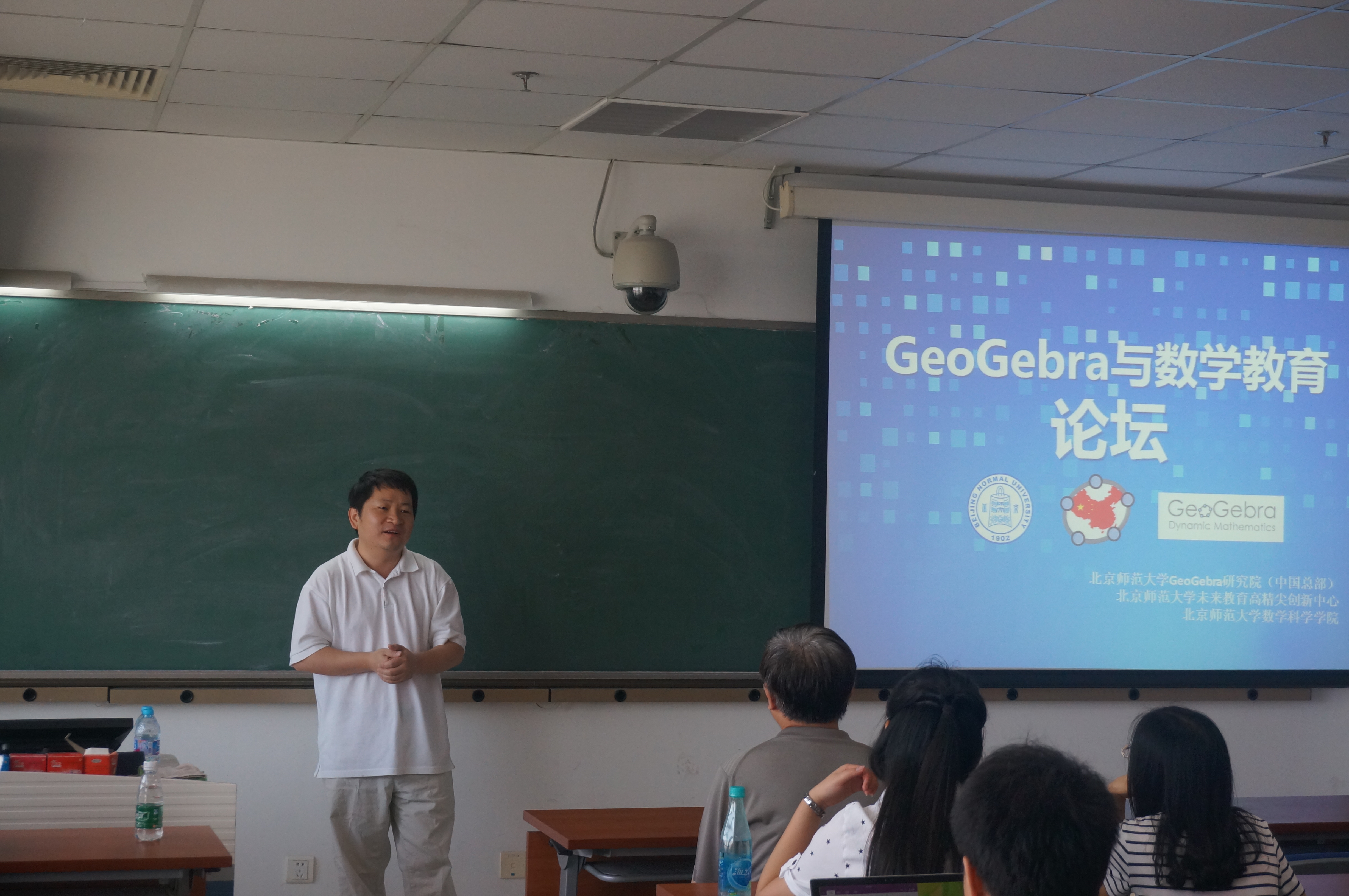 6月18日,geogebra与数学教育论坛在北京师范大学后主楼1124教室成功举办。本次论坛由北京师范大学geogebra研究院(中国总部)、未来教育高精尖创新中心和数学科学学院联合主办。来自全国各地的中小学数学教师、师范院校教师、博士生、硕士生以及相关公司、机构代表参加了会议。