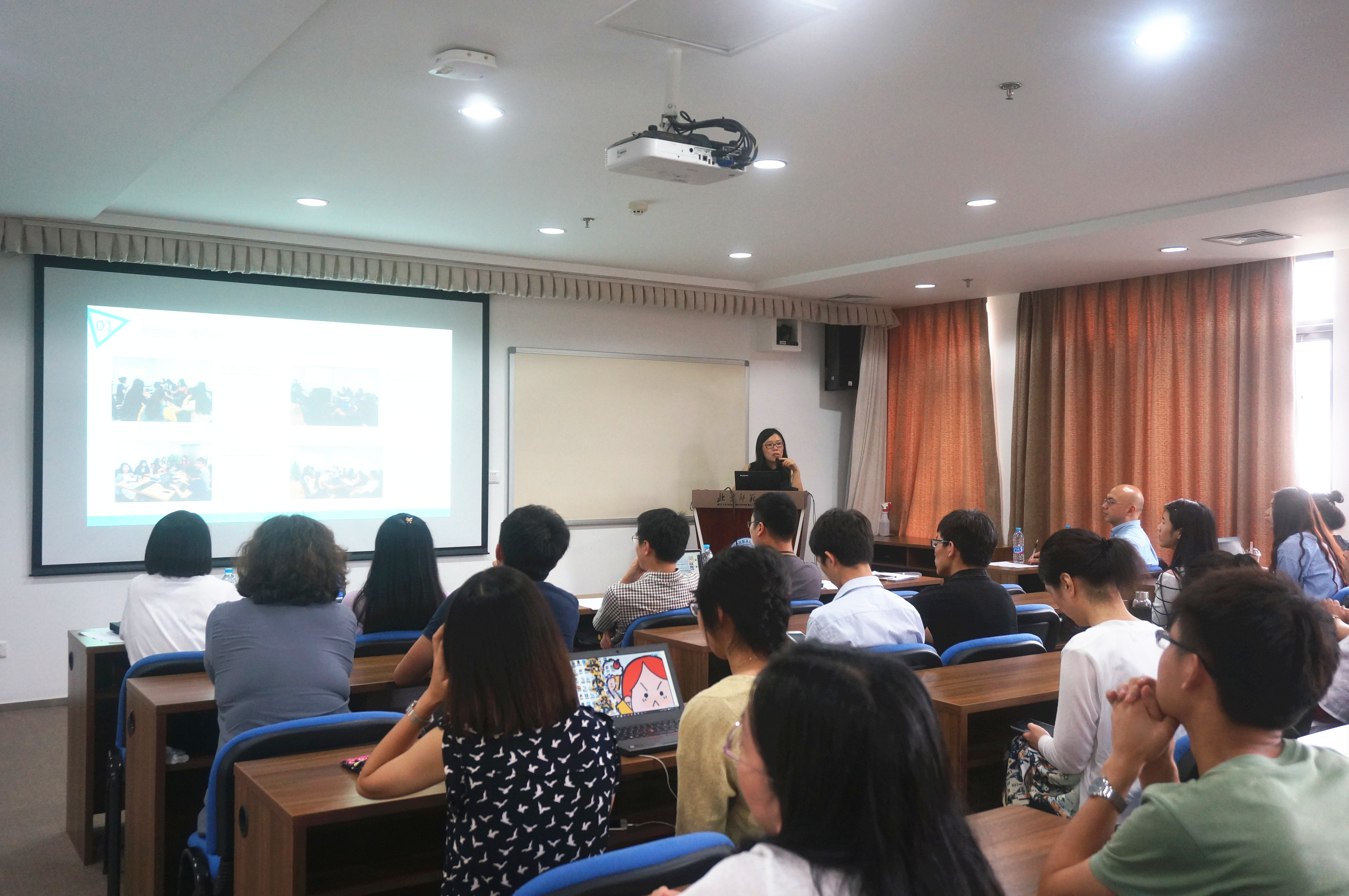 行政办公室的负责人李晓琴老师从四方面汇报了工作,主要中心概况、部门架构、工作定位及工作计划四方面。