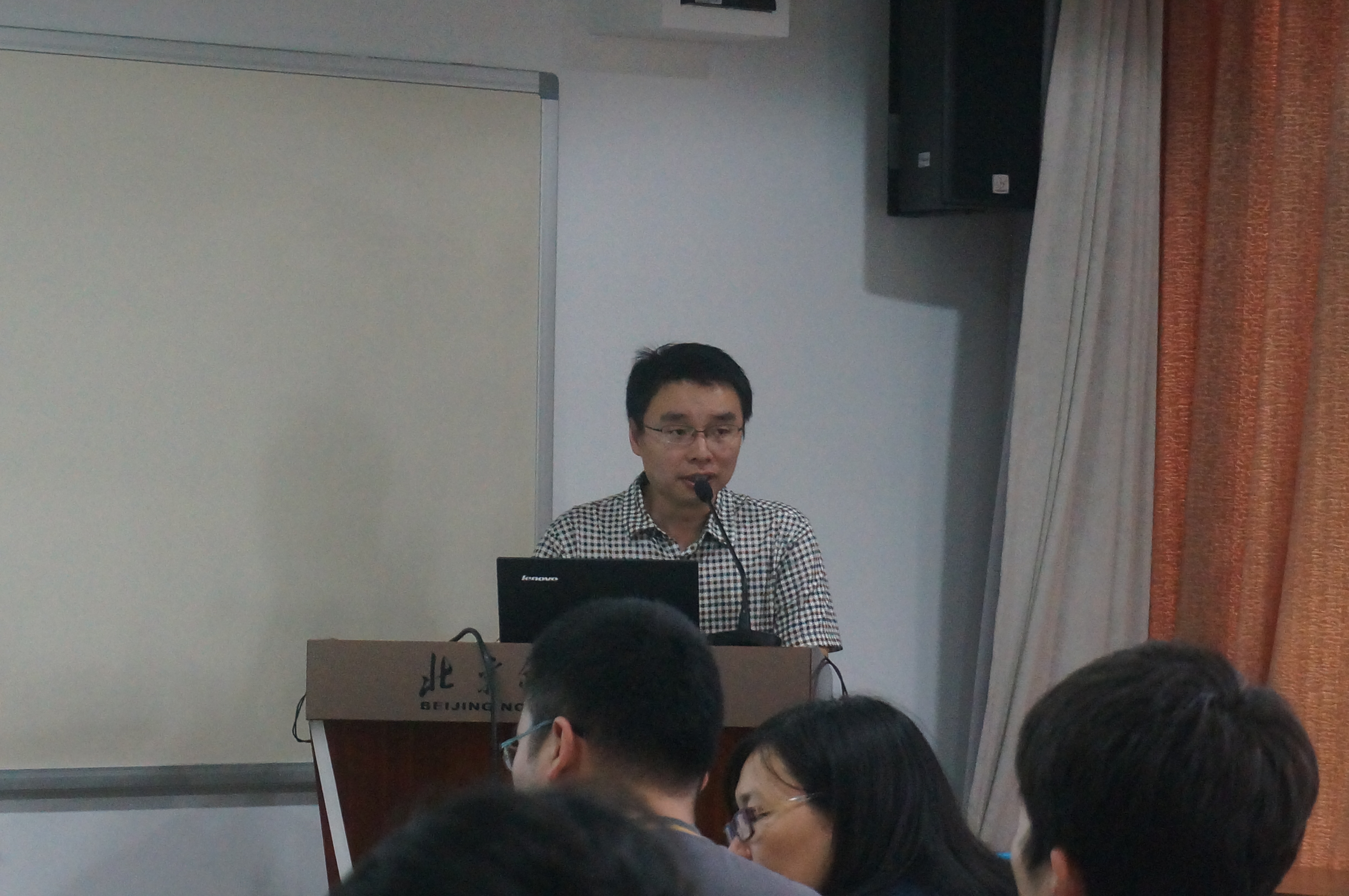会议开始,主持人刘宗顺老师介绍了此次会议的目的是为了鼓励新员工、更好地激励大家怀有饱满的工作热情投入到中心的建设及发展,此次表彰会设置“精英奖”,刘老师介绍了此会议包括三项内容,余老师讲话、部门负责人进行工作汇报和优秀员工表彰。之后中心主任余胜泉教授从中心任务和使命两大方面向所有与会人员介绍了高精尖创新中心的情况。