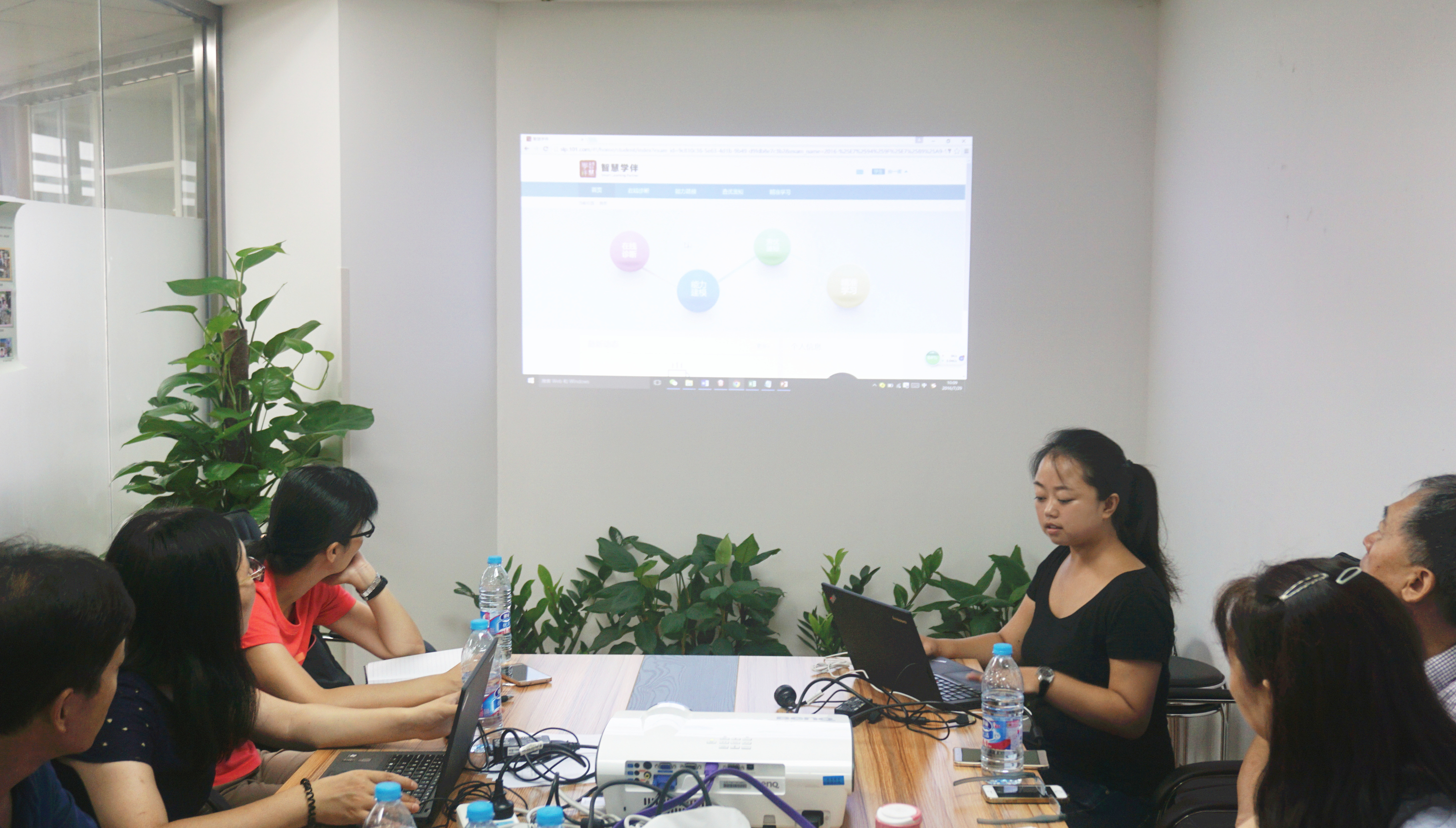 郭晓珊老师从应用视角介绍了智慧学伴平台功能,并对其四个模块功能做了现场操作展示。陈海东主任与王有学主任均表示智慧学伴平台将有助于推进北京教育数字化变革。