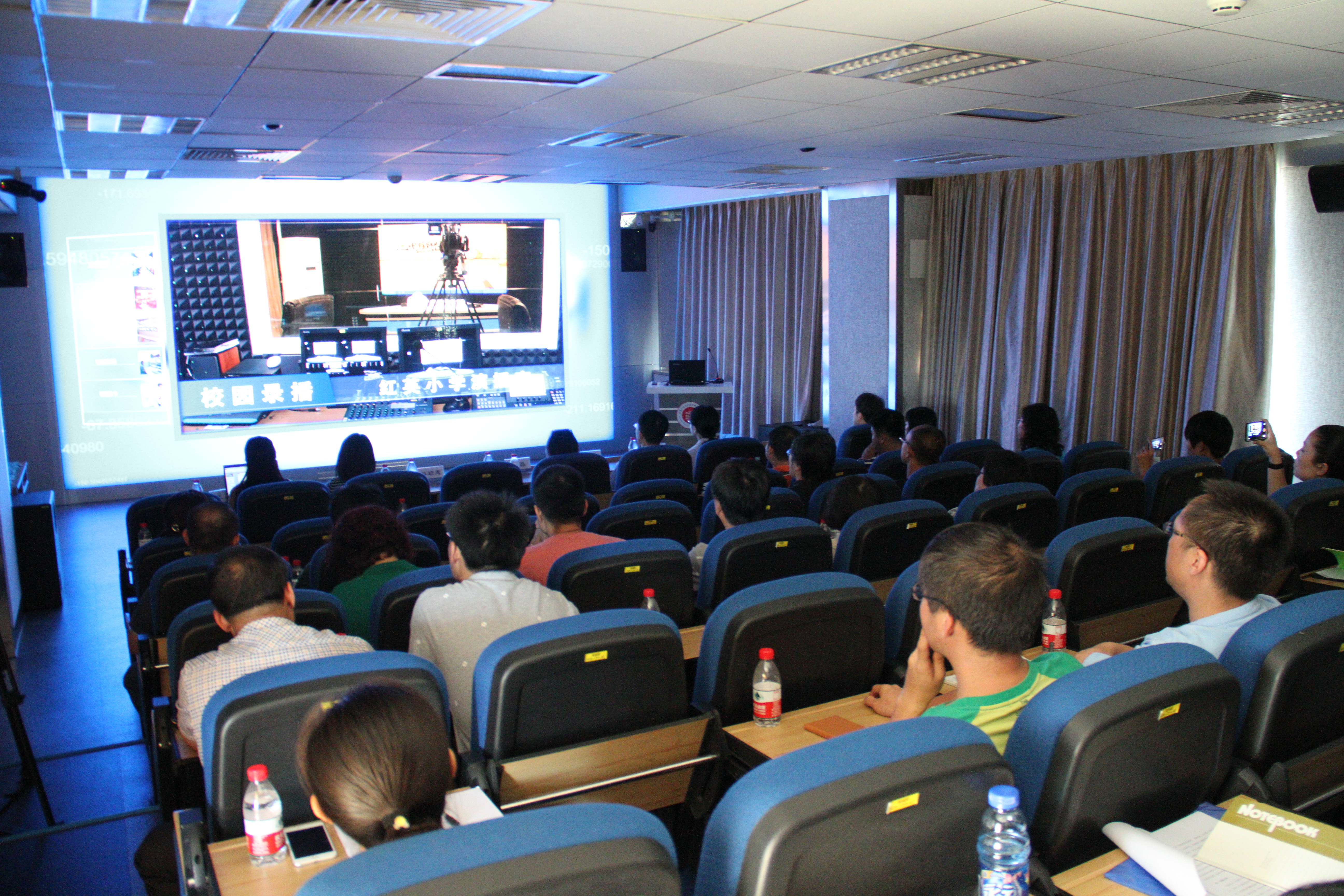 会上播放了以海淀区为代表的智慧校园的发展情况,生动形象地展示了互联网 时代,海淀区各学校信息技术与教育相融合的发展变化。