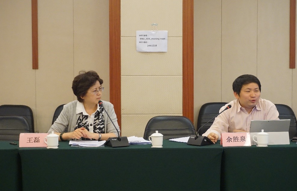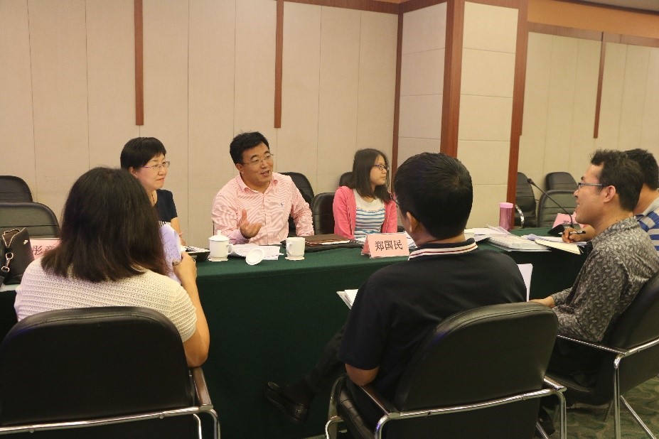 学科教学实验室主任王磊教授主持了此次会议,会议开始中心执行主任余胜泉教授致欢迎词,对通州研修团队来访表达了诚挚欢迎,余主任指出教育部正式发布《关于进一步推进高中阶段学校考试招生制度改革的指导意见》为通州项目的开展提供了良好契机,中心的核心工作就是服务于北京广大师生,推动中高考改革落地,支持学生个性化成长和发展,帮助学生提高学科能力和素养。余主任表示十分期待和通州研修中心就“互联网”项目进行深入合作,帮助学生适应中考对学生创新、实践能力的新要求和对选择的适应,希望大家在合作过程中互相支持和理解,希望每一位老师在此项目中都有所收获,希望促进北京市骨干教师在通州的智力流转,推动通州区城市副中心的教育发展。余主任致欢迎词后,王磊主任汇报了目前学科团队的工作进展,并详细阐述了“互联网”背景下学科教学面对的变革和转变,以及基于学科能力、素养为导向如何优化学科教学,表达了各学科团队全力以赴促进通州教育发展的决心。之后,学科教学实验室副主任李晓庆汇报了目前通州学科能力、素养测试的进展和下一步各学科教学改进整体设计、教研员融入工作的安排和计划。听取了余主任和王磊主任的讲话后,李万峰院长对中心和各位学科首席对此项目的投入表达了感谢,同时表示把学生的实际获得感放在首位是十分有意义的。之后,语文学科首席郑国民教授代表各位首席表达希望和通州的各位教师一起携手合作,伴随互联网的大潮,一起推动通州基础教育的良性发展。