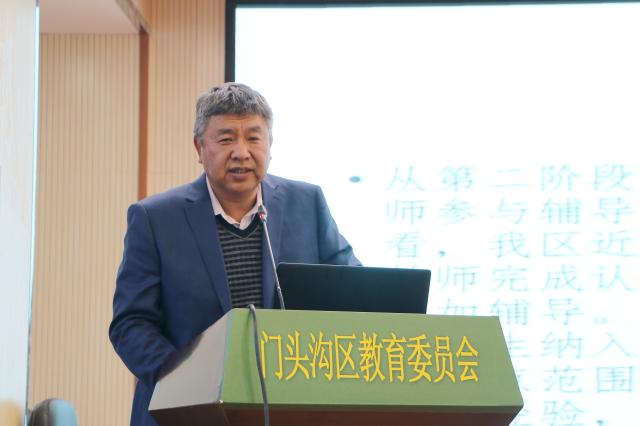 教育培训中心主任丁宏伟从实施背景、总体目标、组织机构、实施方式、实施步骤、实施保障六个方面,解读了门头沟区中学教师开放型在线辅导工作方案。本次启动会后,各中学将积极部署,推进本校中学教师开放型在线辅导工作,区级领导小组办公室将监管各校工作进展情况,每学期期末将召开区级总结会表扬工作突出学校和教师。丁主任提到,将给予在线辅导工作充分的机制保障,建立分层管理机制、激励机制和监督机制。