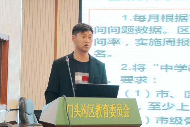 区委教育工委组织人事科科长李娜代表区委教育工委讲话。与有偿家教不同,开放辅导是政府主导的直接面向全体学生的免费在线服务。李娜科长鼓励门头沟区广大教师积极参与,提升教师参与率,提高微课上传率和微课质量。建立领导小组,落实好相关工作计制,责任落实到人,各相关单位通力配合,使开放型在线辅导工作在门头沟区落地开花,助力基础教育质量提升。