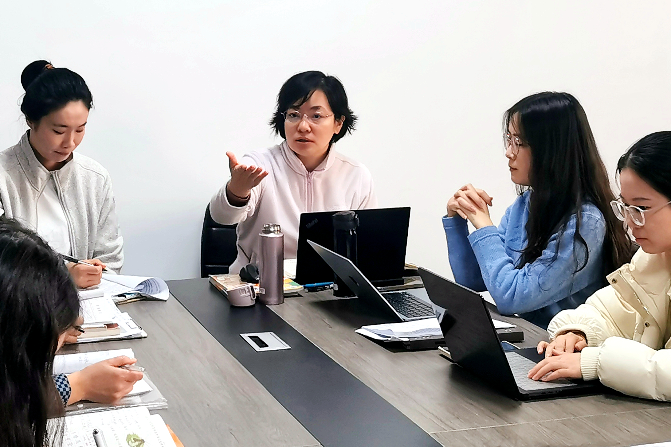10月16日下午与17日上午,由吴思珉组织课题组与授课教师就教学设计进行深度的研讨和交流,为教师提供了细致入微的建议。在英语课方面,建议聚焦于课中资源设计、教学环节衔接、课后作业分配以及年级之间相同主题教学内容层次性等方面。语文课中,课题组从教具与知识呈现、拓展任务设计、文本主题解读等方面为教师提供了教学建议。