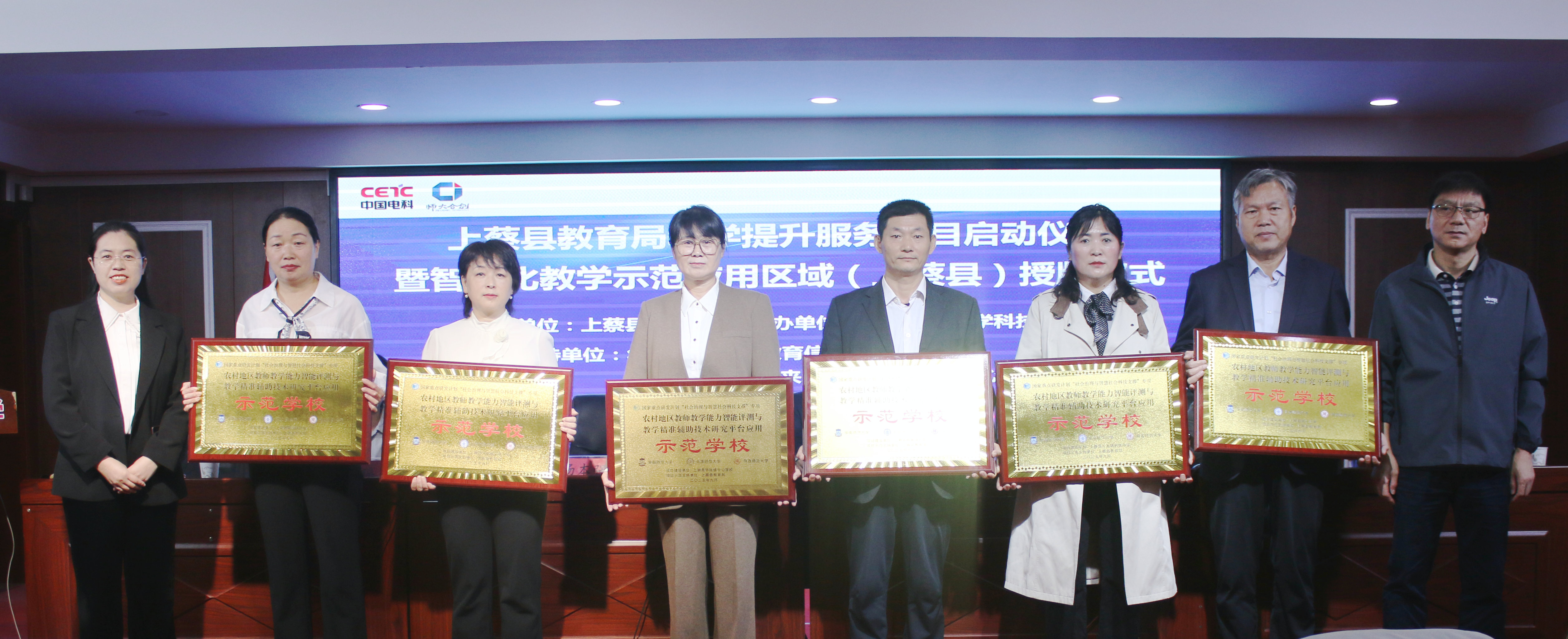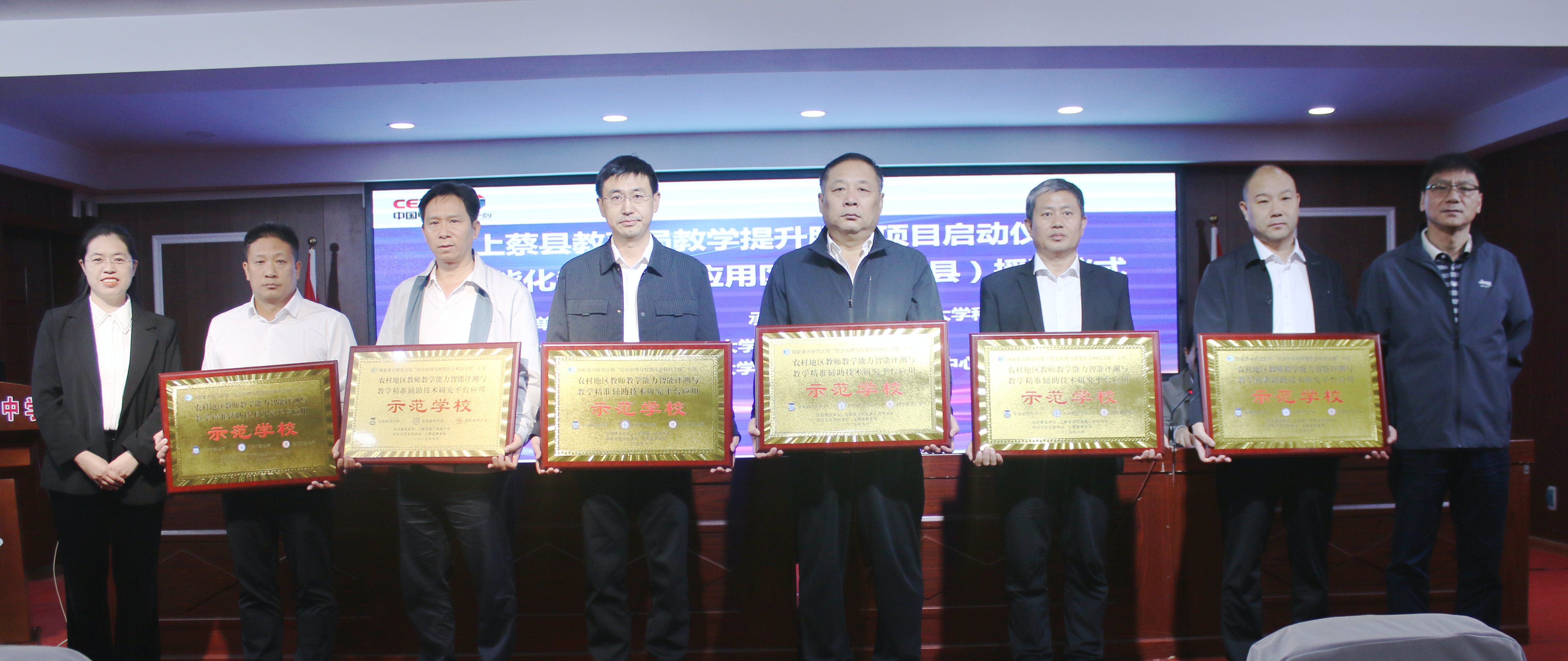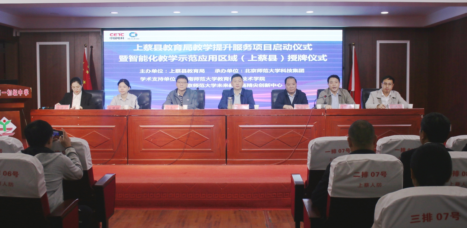 为深入贯彻党的二十大精神和习近平总书记关于乡村振兴的重要论述,以教育数字化转型推动乡村教育内涵式与跨越式发展,9月19日,在上蔡县教育局大力支持下,北京师范大学和华南师范大学联合相关部门和单位在河南省上蔡县第一初级中学召开上蔡县教育局教育提升服务项目启动仪式暨智能化教学示范应用区域授牌仪式。该项目由北京师范大学、华南师范大学、广州市奥威亚电子科技有限公司等九家单位承担,将河南省上蔡县作为重点示范应用试点单位,开展教师能力评测与精准辅助示范应用研究。