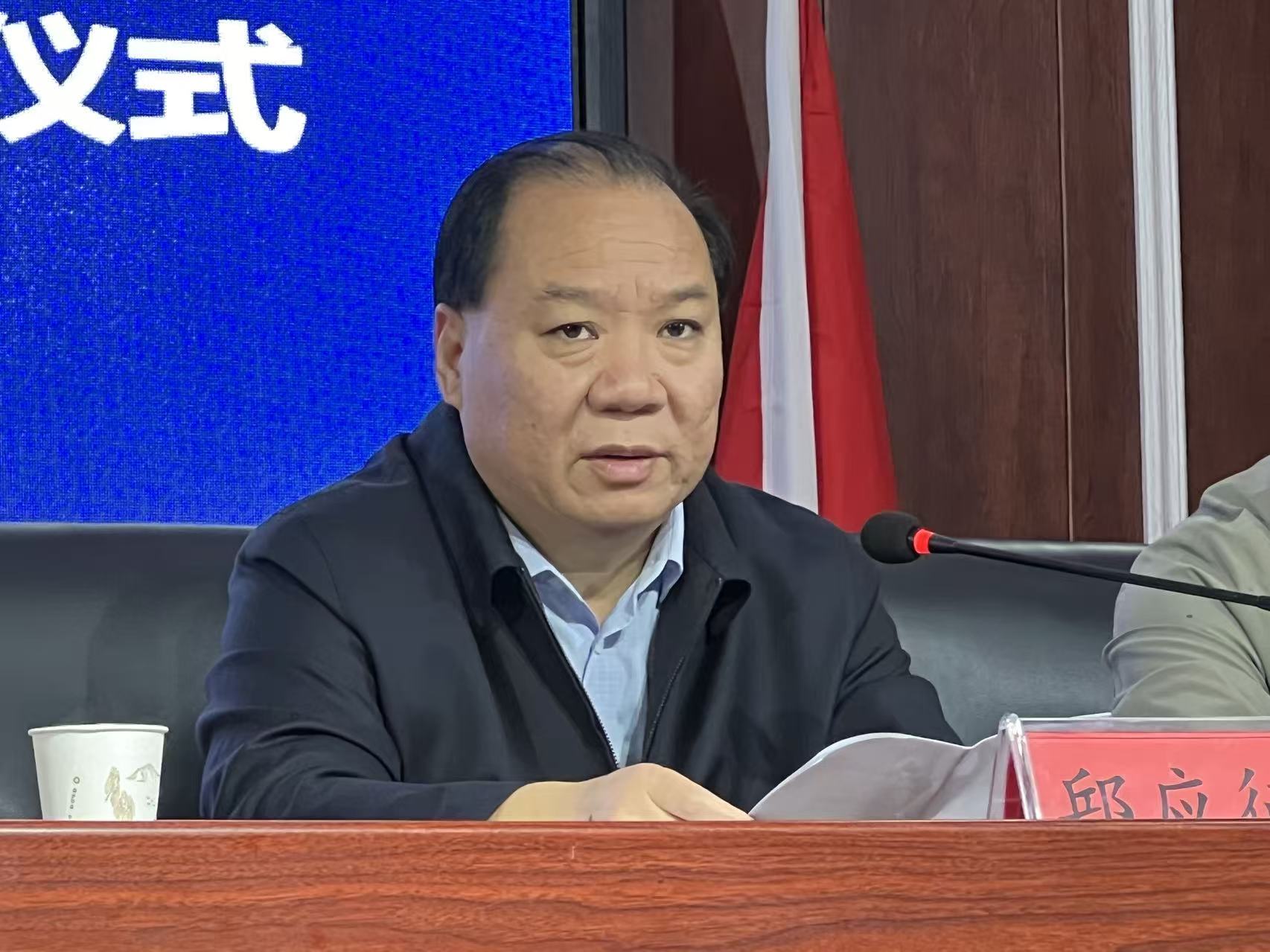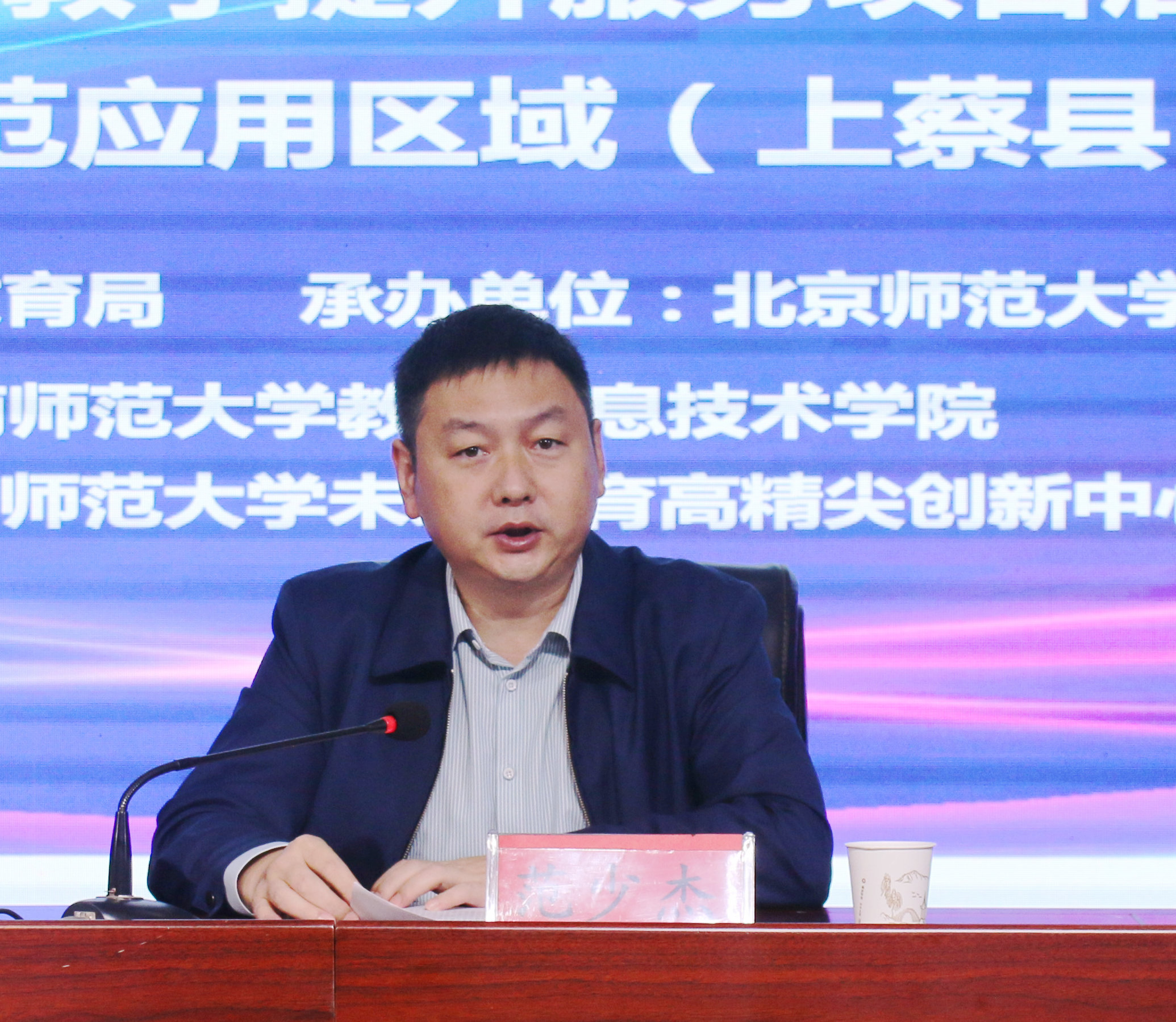 授牌仪式结束后,上蔡县副县长范少杰发表讲话。他表示,上蔡县始终优先发展教育,此次项目以县一中为试点,北师大专家团队将带来前沿理念,结合智能化教学示范应用,从学校治理、教学体系、特色课程三方面赋能教育。县政府将做好服务保障、推动学习转化、抓好示范推广,助力项目落地。该项目是电科集团践行社会责任、上蔡县探索教育改革的重要举措,有望提升教学质量,让优质教育成果惠及更多学校与学生。他还对专家团队致谢,预祝项目圆满成功。