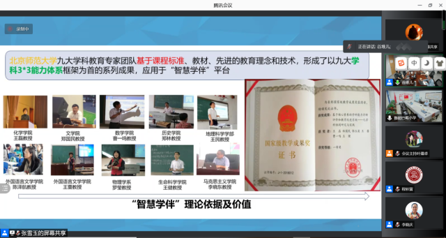 张雪玉通过ppt展示了高精尖中心智慧学伴平台的应用功能及相关课题实施规划,为巴蜀小学课题研究组协同高精尖中心后续推进小学阶段互联网 教育进一步指明了合作研究重点。